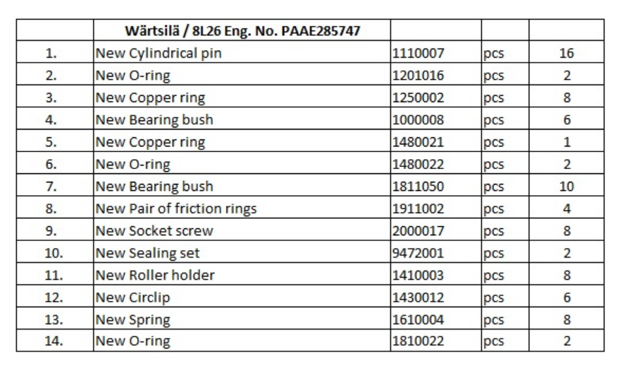 Demand new cylinderical pin 1110007-16pcs.