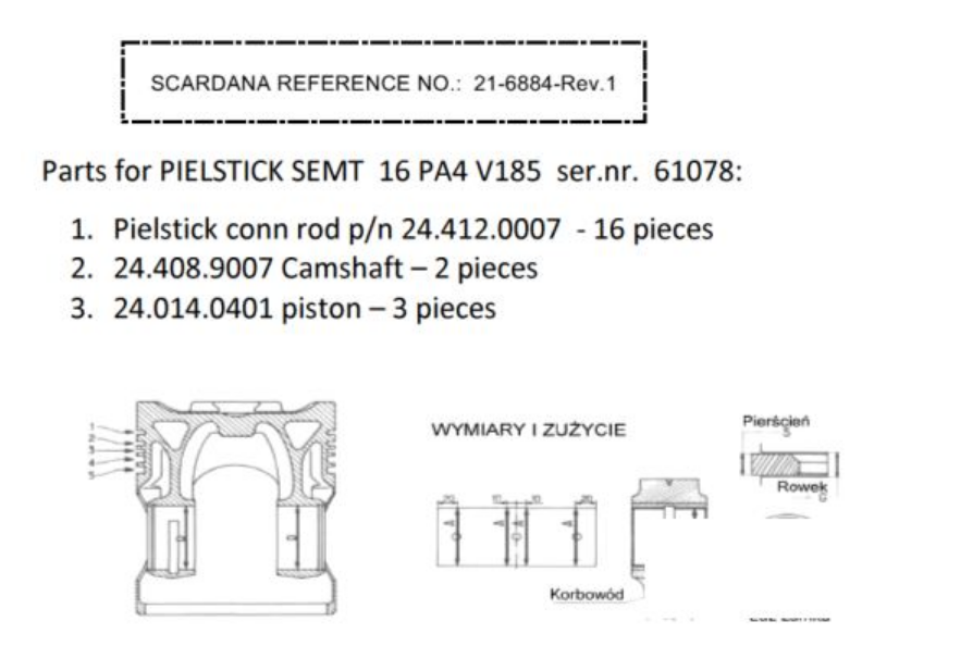 Demand scardana reference No.:21-6884-Rev.1 pielstick conn rod p/n 24.412.0007 -16pieces.