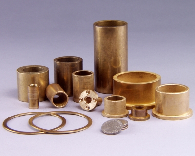 These lifetime self lubricating bearings are impregnated in the sintering process with a lubricant to suit the application. Sintered bearings are available in lead free bronze, bronze alloys and Iron. Additionally: flanged bearings (I.D.'s 3 mm to 60 mm by 4 mm to 60 mm long) and precision (I.D. tolerance ISO H7) spherical bearings, with or without a collar, (I.D.s 4 mm to 12 mm by 10 mm to 23 mm O.D.'s) are available, as well as custom sizes and designs. Because of the very low coefficient of friction these bearings show no wear after many thousands of hours of use. Standard metric cylindrical and flanged oil impregnated bearings are typically shipped from stock. Custom bearings (I.D., O.D., flange size, and length) can be ordered as well as special purpose alloys.