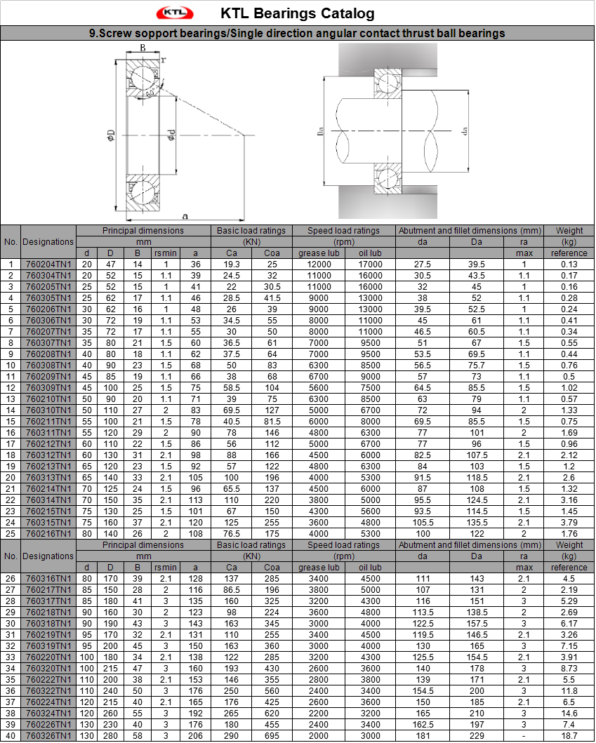 Dalian Kaitele Machinery Co., Ltd. (Brand KTL), an innovative and technological enterprise, located in No.15 Xinggong road, Industrial Park, Wafangdian city, Liaoning province, China — the “China's Bearing Capital” specializes in designing and manufacturing Super/High precision bearings. KTL has fixed assets 110 million CNY, which occupies 70 thousand square meter, sales amount 81 million CNY/year.