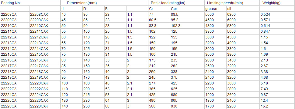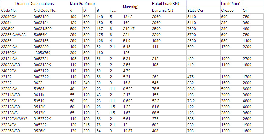 Number: 23080CA | 23084 | 230/500 | 22356 CA/W33 | 23056 | 23220 CA | 23160CA | 23121 CA | 23022/W33 | 24022CA | 23122 | 22322 | 22208 CA | 22311/W33 | 22210CA | 22212/W33 | 22213/W3 | 23122CAK/W33 | 23224CA | 22226/W33
